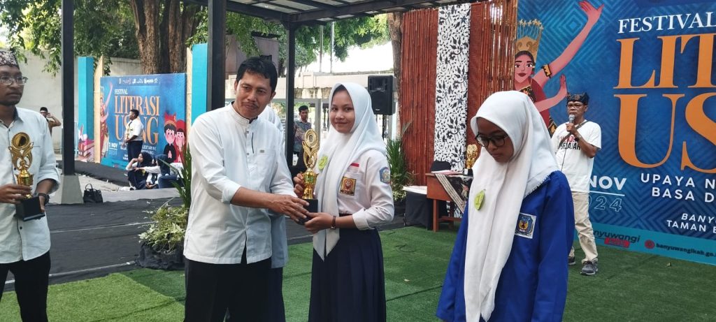 Kami mengucapkan selamat kepada Iklima Chalya Sofira yang berhasil meraih Juara 2 dalam cabang Bercerita Bahasa Using (Mendongeng) dan Ferlin Anisa Turrohmah yang meraih Juara 3 dalam cabang Cerpen Using pada ajang Festival Literasi Using 2024. Prestasi ini menjadi bukti kecintaan dan kepedulian mereka terhadap pelestarian budaya Using melalui karya-karya yang inspiratif.